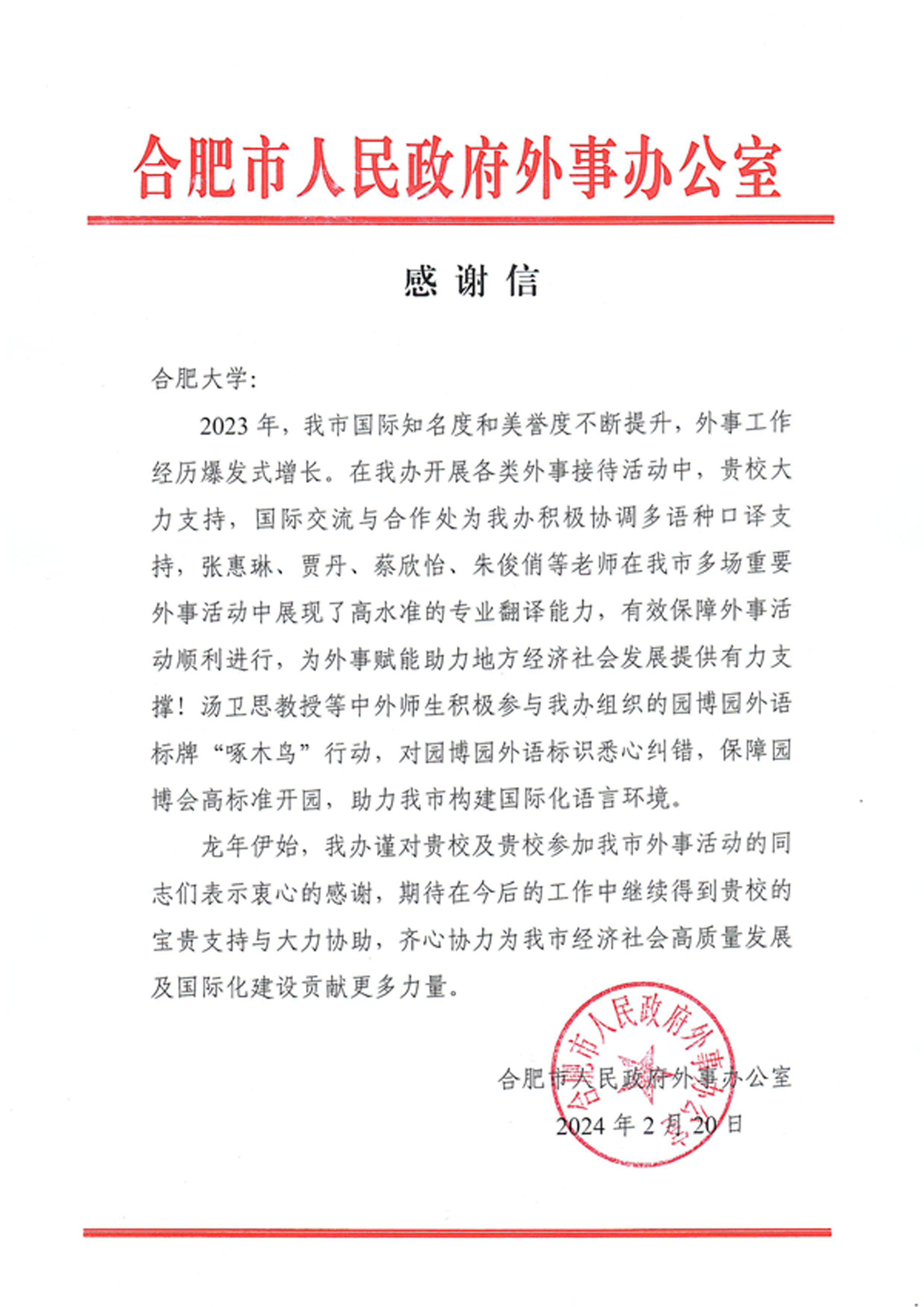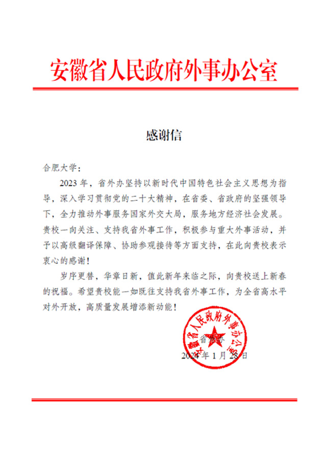 近日,安徽省人民政府外事办公室、合肥市人民政府外事办公室分别向日韩欧美福利视频_黑人巨大人精品欧美三区_欧美成人另类人妖_欧美在线精品一区二区三区_欧美一区二区三区性视频_日韩精品欧美视频_性欧美极品xxxx欧美一区二区发来感谢信,充分肯定我校在2023年服务地方经济社会发展、积极参与省市重大外事活动所做出的贡献。
