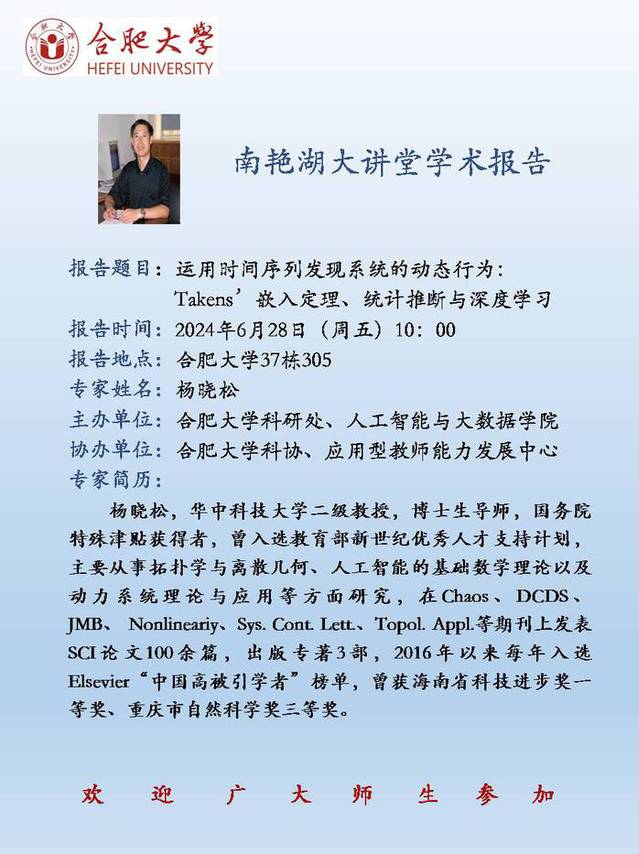 【南艳湖大讲堂】运用时间序列发现系统的动态行为: Takens’嵌入定理、统计推断与深度学习