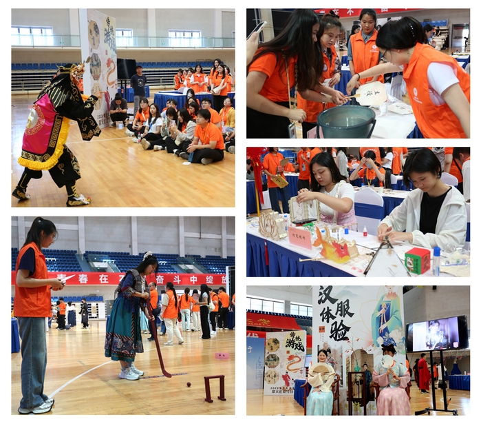 活动现场,在学生助理的带领下,有的台湾青年学生身着练功服,身姿矫健,拳风虎虎生威,脚步轻盈如燕,一招一式间尽显中华武术的博大精深;有的台湾青年学生身着华美飘逸的汉服,亲身体验古代文人的风雅与韵味,与徽文化的历史脉络产生深深的共鸣;有的台湾青年学生在欢声笑语中参与投壶、射箭和套圈等传统游戏,感受古人休闲娱乐的乐趣;有的台湾青年学生亲手尝试制作漆扇、灯笼等具有地方特色的手工艺品,在一笔一画间惊叹于中华书画艺术的魅力。