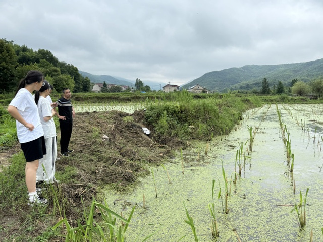 7月11日,社会实践团队来到梨山茭白基地。基地负责人易群介绍了当地茭白种植情况。据了解,当地政府高度重视茭白产业,通过开展技术培训、给予资金支持等举措,助力当地村民提高种植水平和管理水平,从而实现增产致富、脱贫致富。穿梭在绿意盎然的茭白田间,团队成员不仅见证了农业发展的新气象,也感受到了乡村振兴战略引领下农村建设发展的生动实践。