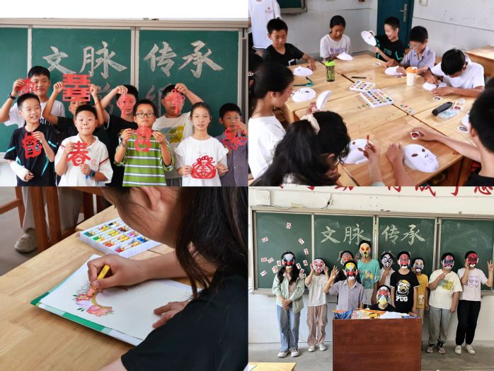 中华文化不仅是中华民族的“根”,更是积淀着中华民族最深沉的精神追求和独特的精神标识。国学组以中华文化为基点,从传统服饰讲到中华文物,从诗词的赏析讲到中国历史,不断加深学生们对于传统文化的理解。为弘扬传统文化,培养学生审美情趣和文化修养,书画组详细讲解了书法的横竖撇捺,带领学生制作簪花团扇,让学生们在学习过程中体验到传统文化的美。英语组通过创新而富有吸引力的教学方式,如课堂竞赛小游戏,你画我猜等,点燃学生们对英语学习的热情。这种热情不仅提升学生们对于外语学习的兴趣,还为他们未来的初中英语学习打下基础。歌舞组教学《上春山》《少年中国说》等歌曲与《相亲相爱》舞蹈,让学生们感受其中的红色精神和团结精神,激励了青少年振奋民族精神与团结精神。