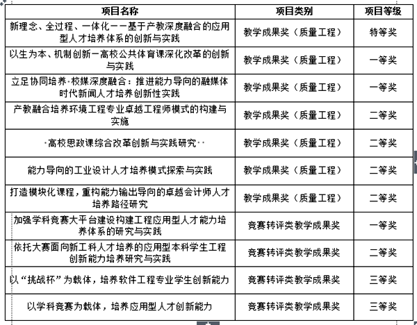 另外,学校此次评选中获得教学成果奖11项,成绩喜人,其中特等奖1项,一等奖3项,二等奖5项,三等奖2项。