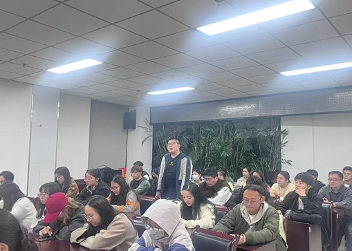会议伊始,褚俊雷老师首先对新同学的加入表示了热烈的欢迎。他结合自身的学术历程,为新入会的研究生们带来了宝贵的学术经验分享。褚老师深入浅出地讲解了研究生阶段的学习规划与科研工作方法,鼓励同学们珍惜时光,勤奋钻研,勇攀学术高峰。在谈到研究生会工作时,褚老师强调了各部门之间相互协作、共同奋斗的重要性。他希望研究生会能够在科研之余,为全校研究生策划和举办更多有趣、有益的活动,丰富同学们的校园生活,提升研究生的综合素质。