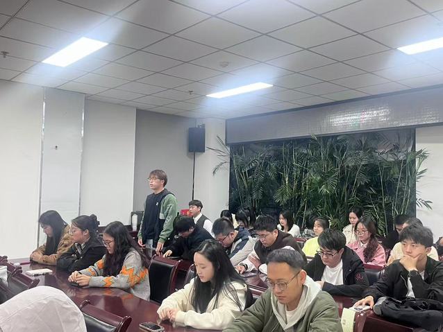 随后,会议进入了新生干事主动发言环节。媒体宣传部的徐德闻同学率先发言,他分享了自己对未来三年不同阶段的工作目标和对校园实践活动的期待。徐德闻同学的发言不仅展示了他对研究生会工作的热情和信心,也活跃了现场的氛围,激发了其他干事的发言热情。紧接着,其他干事也纷纷畅谈自己的理想和规划。他们有的表达了对学术研究的执着追求,有的则希望能在校园活动中发挥自己的特长和优势,为研究生会的发展贡献自己的力量。