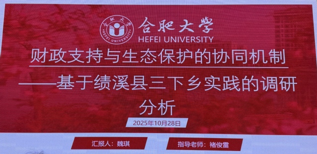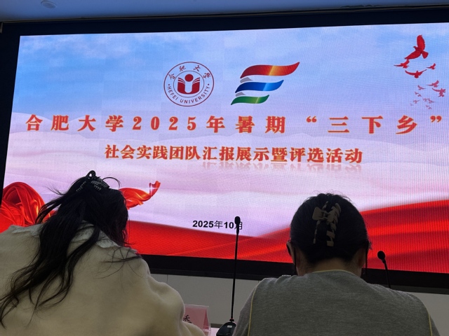 102814:00 在大学生活动中心北楼206学生活动室举办的2025年暑期“三下乡” 社会实践团队汇报展示暨评选活动圆满落幕。我院选送的“合研星光”团队凭借出色的实践成果和精彩的现场汇报,以88.8分的优异成绩荣获“优秀实践团队”、褚俊雷荣获“优秀指导教师称号。