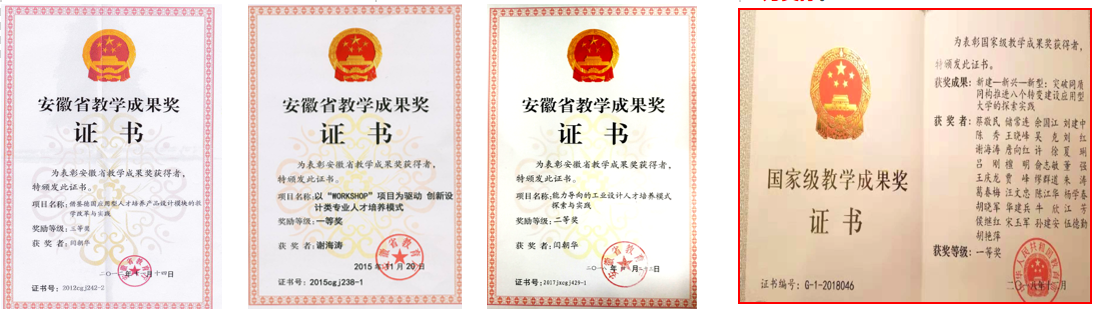 国家级综合改革试点专业、安徽省特色专业、安徽省一流专业,中德共建专业,长期与多所德国高校交流合作,每年开展中德WORKSHOP至今23届。获得安徽省教学成果一等奖1项、二等奖1项、三等奖2项;注重产学研结合,注重培养学生的创新思维、设计实践和团队合作能力,人才培养成果丰硕。