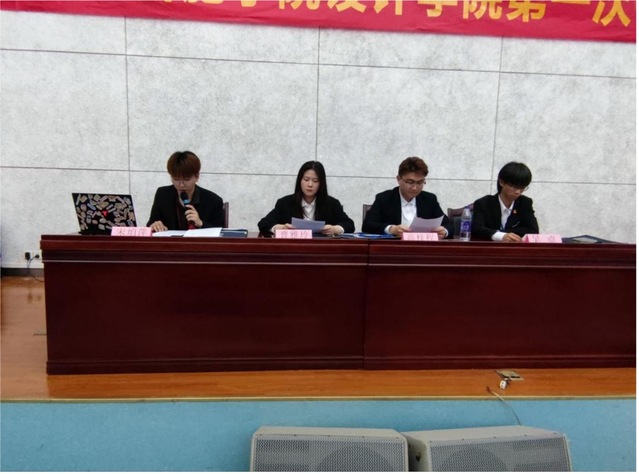 合肥学院设计学院第二次学生代表大会暨第一次团员代表大会于2022年6月12日上午10点在图书馆B厅举行。此次会议请假两人,实际到场人员超过全体人员2/3,会议有效。