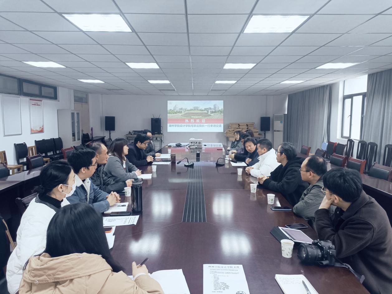 会上,潘峰副院长首先对湖州学院设计学院的来访表示热烈欢迎。详细介绍了设计学院在专业建设、人才培养、实验室建设、产教融合等方面的发展现状和工作经验,同时交流了未来改革方向和计划。吴云副书记介绍了设计学院学生管理和就业工作等情况。毛攀云教授充分肯定了设计学院专业建设做法和成果,介绍了州学院设计学院发展情况。认为通过此次考察,我校应用型人才培养和服务地方经济发展的特色育人教学模式印象深刻,宝贵经验和成功做法值得借鉴,希望后期进一步加强双方交流合作。