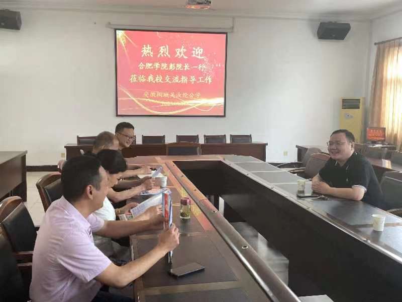 工作组一行受到吴汝纶公学的热烈欢迎,丁九香董事长对招生工作组的到来表示热烈欢迎。党支部书记、常务副校长李雪磊表示将一如既往全力支持合肥学院的招生工作,今年将继续鼓励更多符合条件的学生填报合肥学院。并且介绍了学校在培养人才方面所采取的有效措施,展望了双方院校未来的合作前景,提议强化两校合作。