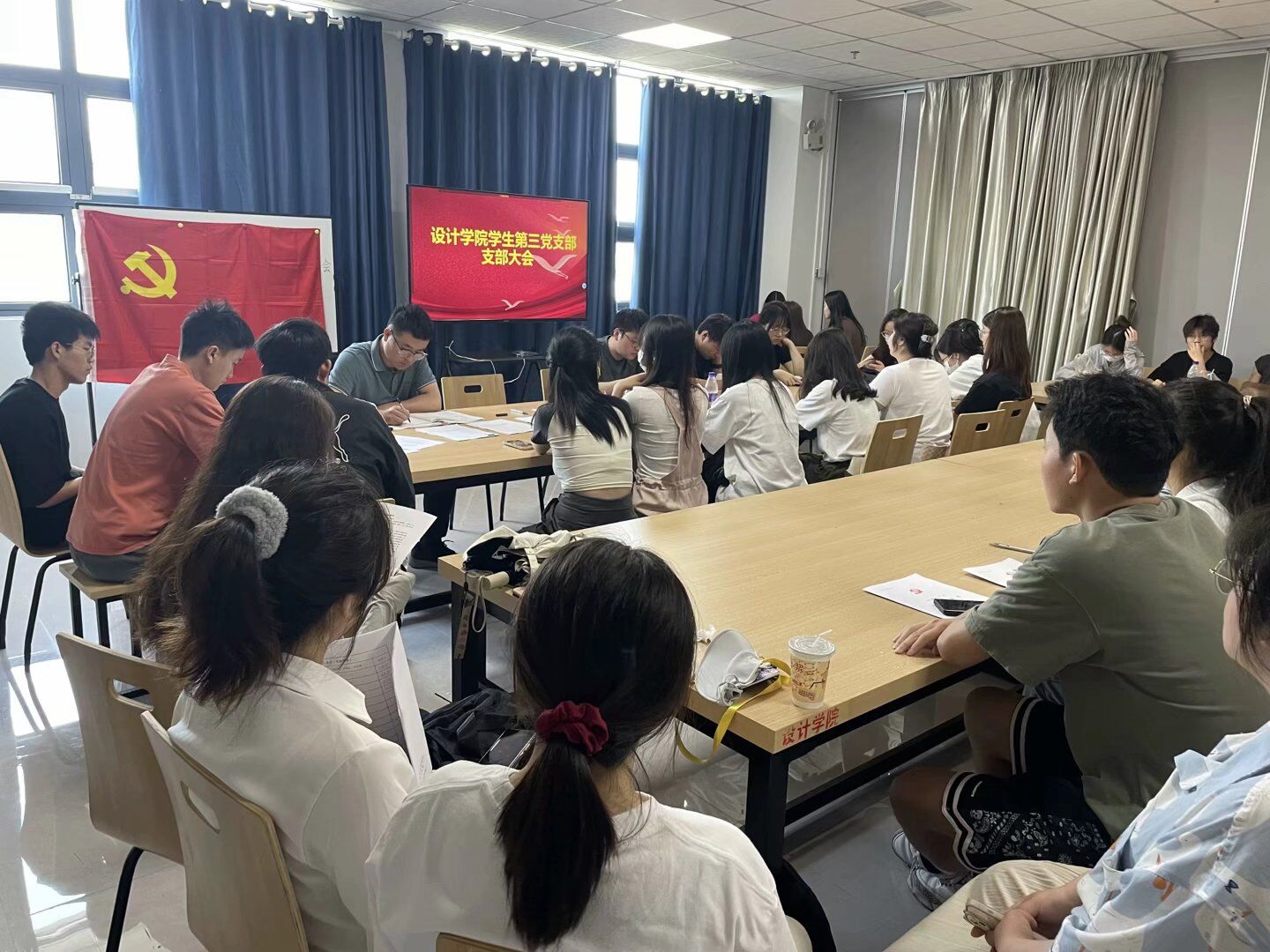 2023年6月10日上午,设计学院学生第三党支部于55栋208教室召开了支部大会。本次会议共到场41人,有表决权的党员共16位。学生第三党支部全体党员参加了会议,会议由支部书记徐冬主持召开。