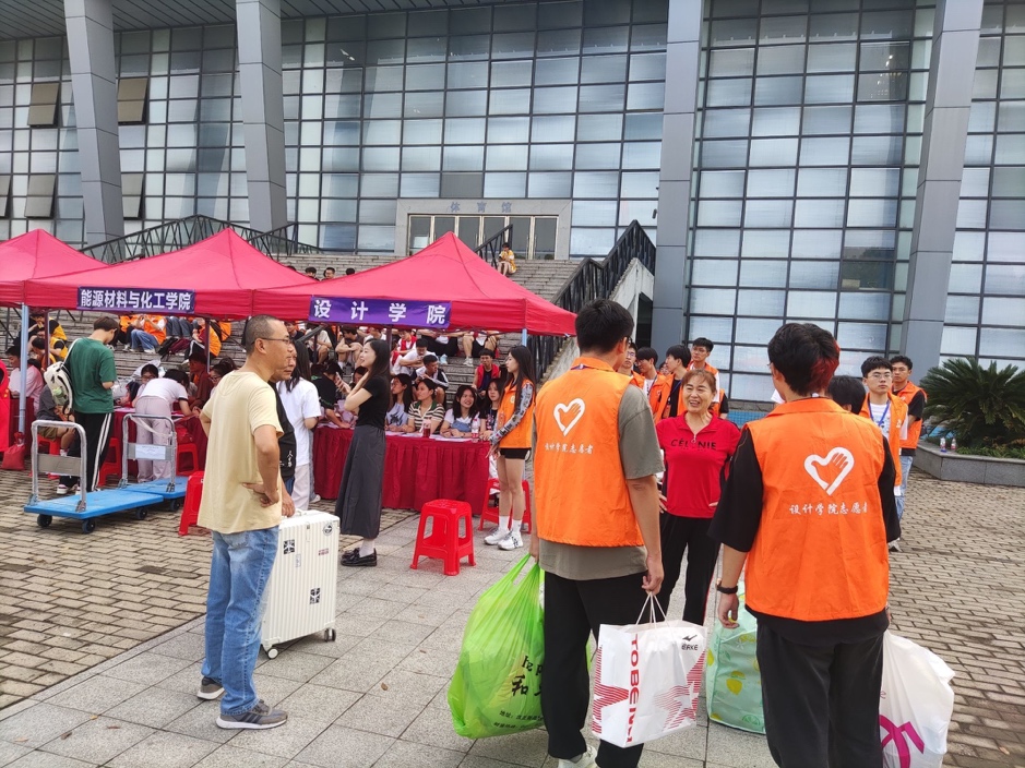 9月6日,合肥学院设计学院23级新生开始报到,早上7点,学院志愿者们在学院领导、老师的带领下,在校门口、各报到点迎接新生和家长。