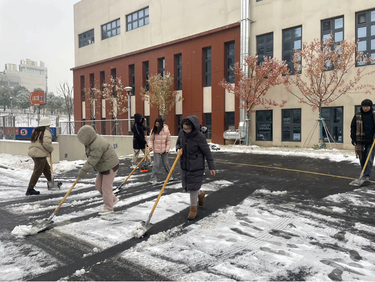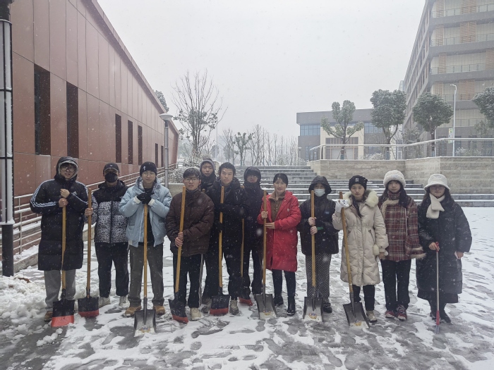经过半天不间断的铲雪与维护,教学楼周边出入口、主干道积雪已清除,为全院师生正常的教学与出行提供了保障。