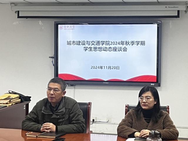 2024年11月20日中午,城市建设与交通学院于41栋305会议室召开了2024年秋季学期安全教育暨学生思想动态座谈会。出席本次会议的有城市建设与交通学院党委书记张永军、党委副书记高乔楠、全体辅导员,以及各班团支书和班长,会议由党委副书记高乔楠主持。