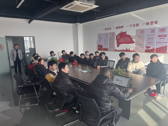 在合肥桑尚测控技术有限公司,公司技术负责人苏总通过后台系统给同学们展示了临泉县城乡供水一体化(群众喝上引调水工程)原水官网安全监测项目的信息和数据实时监测情况,通过PPT分享介绍了分布式光纤检测、管道谛听及智能球检测、漏损及水锤监测、结构安全检测等核心技术在项目中的应用情况,并就同学们感兴趣的问题进行了积极的交流互动。