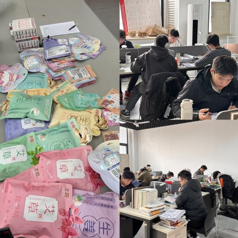 支部为学院每位考研学子准备了笔和暖宝宝。两支笔寓意考试中笔笔生花,书写属于自己的辉煌答卷;暖宝宝代表了支部在冬日里的送给他们的温暖祝福。学生们纷纷在横幅上留下鼓励自己的话。支部还走进考研自习室,为部分还在奋战学习的学长们送上祝福和礼物,鼓励他们保持积极心态,全力以赴迎接考试。