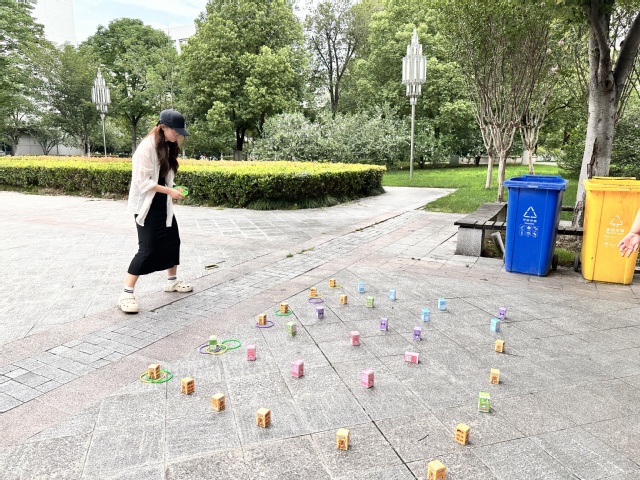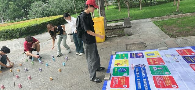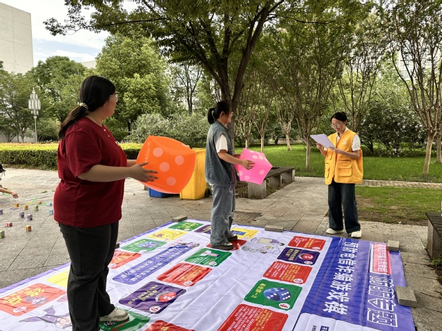 活动设置了两轮游戏。在“玩套圈,防圈套”环节中,同学们需要先回答反诈问题,如常见网络诈骗方式、如何保护个人隐私信息等,答对即可获得套圈机会,答错则由现场志愿者进行细致讲解。在轻松愉快的游戏氛围中,同学们不仅收获了欢乐,更深刻记住了实用的反诈知识。在“识诈有道,步步为营”飞行棋闯关活动,同学们3人一组,通过掷骰前进,落入特定棋格时完成识别非法“校园贷”、网络游戏诈骗、“杀猪盘”等常见诈骗套路的小挑战。大家在棋盘上你追我赶,既比拼了智慧,又学到了反诈技能,现场不时爆发出阵阵欢笑声与喝彩声。