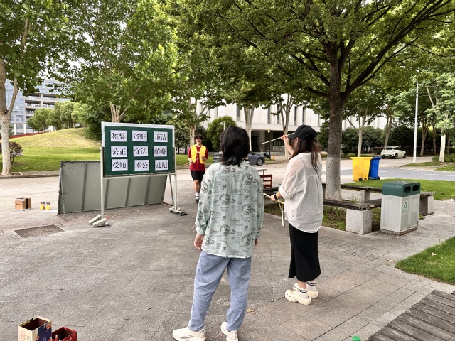 活动设置“清廉海报”共创、“清风箭阵”打靶、“持廉前行”三项特色环节。在“清廉海报”创作区,学生们用画笔为“廉洁”主题元素填色、书写感悟,以艺术创作传递对廉洁文化的深刻理解;“清风箭阵”现场,九宫格展板上“贪腐”“清正”文字分明,学生投掷木箭,在“击中贪腐加分、误中清正扣分”规则中,强化对廉洁的捍卫意识;“持廉前行”环节,学生手持乒乓球拍护送乒乓球奔跑,球掉落后要从头再来,警醒学生克己慎行,守好底线,树好廉洁自律“风向标”。