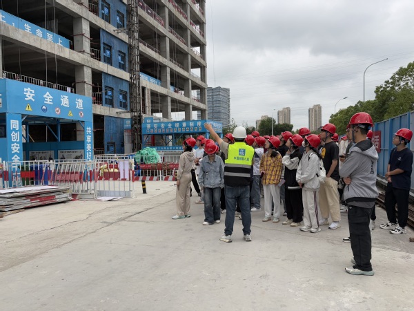 2025年9月18日上午,智能建造与交通工程学院2022级土木工程专业本科生在指导老师带领下,赴合肥金融广场B地块施工总承包工程项目开展了一场生动而深刻的生产实习现场教学活动。