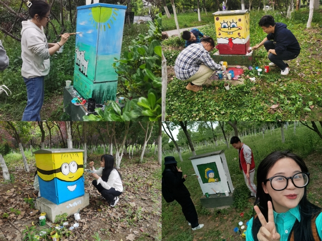 到达公园后,在园区管理处工作人员的安排下,学生们结合自身所学专业知识,在配电箱上绘画。绘画的内容有风景、卡通人物、花卉,让原本不起眼的配电箱华丽变身,成为公园里一道靓丽的风景线。绘画完成后,同学们纷纷表示活动既锻炼了自己,又让公园更加美观靓丽,同时感受到了劳动后的充实。