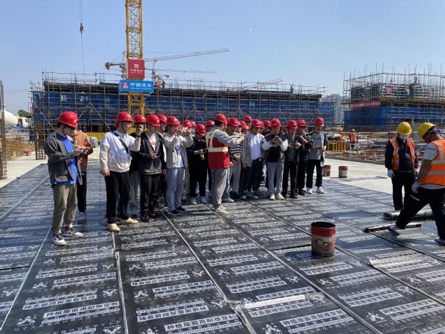 中建国际项目工程技术人员针对目前项目上正在开展的混凝土构件施工、叠合板施工、预制楼梯吊装、防水卷材铺设等向同学们详细介绍了施工工艺以及技术要点。
