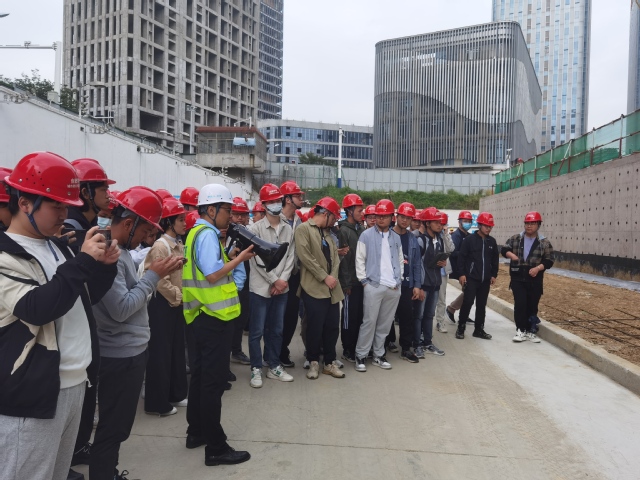 现场施工项目负责人对本次生产实习活动高度重视,对学院学生的到来表示欢迎,并认真组织、安排相关技术人员带领广大师生进行场地参观。在本次项目实习中,同学们观看了深基坑开挖、支护、基础施工等重要结构的施工过程,并与现场负责技术工程师做了深入的交流和讨论,收益颇丰。