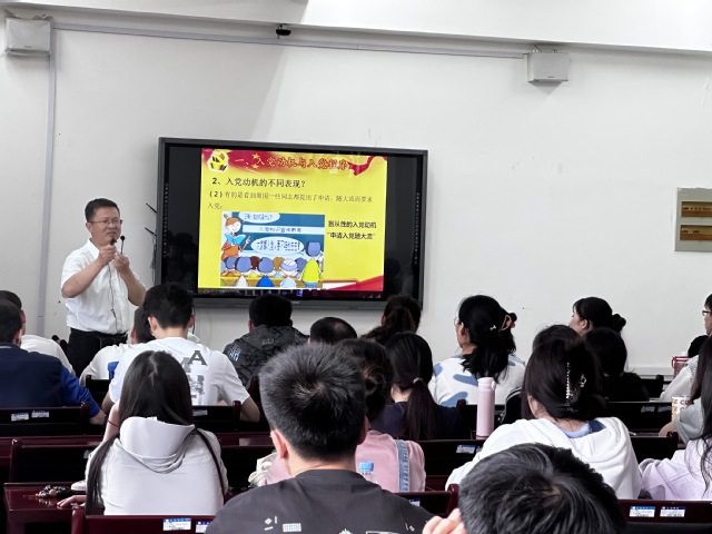 丁增云要求各位学员端正入党动机,他指出青年教育最重要的是引导正确的思想,为党育人,为国育才。他强调党员和入党积极分子要发挥先锋模范作用,例如带头宣传反诈行动,带头好好学习,在关键时刻要敢于站起来,承担起自己的责任,要起到先锋模范作用、桥梁作用和骨干作用。