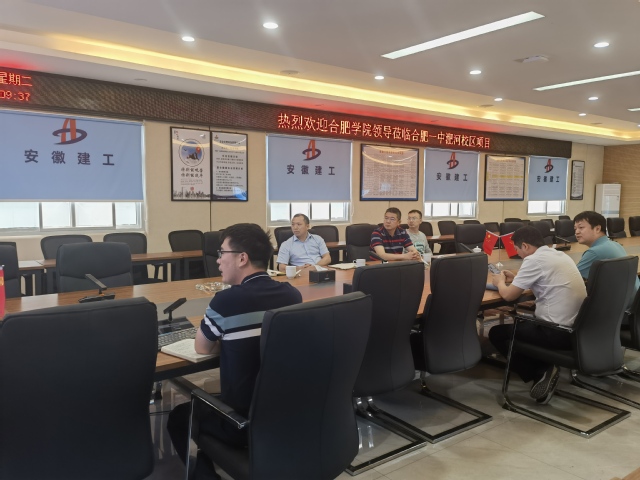 项目部经理崔冲首先表达了与我院进行科研合作和联合人才培养的迫切需求;接着介绍了合肥一中淝河校区项目的基本情况并就项目建设中遇到的技术难题与我院教师进行了交流;最后,双方围绕科研合作、学生实习和就业等方面具体方案展开研讨。