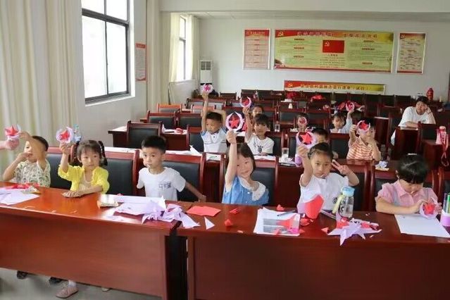 73日上午九点三十分,“传星星之火,忆百年党恩”志愿团在太平畈乡村委会会议室举办了“红心寄于纸,纸上生红星”手工折纸活动。