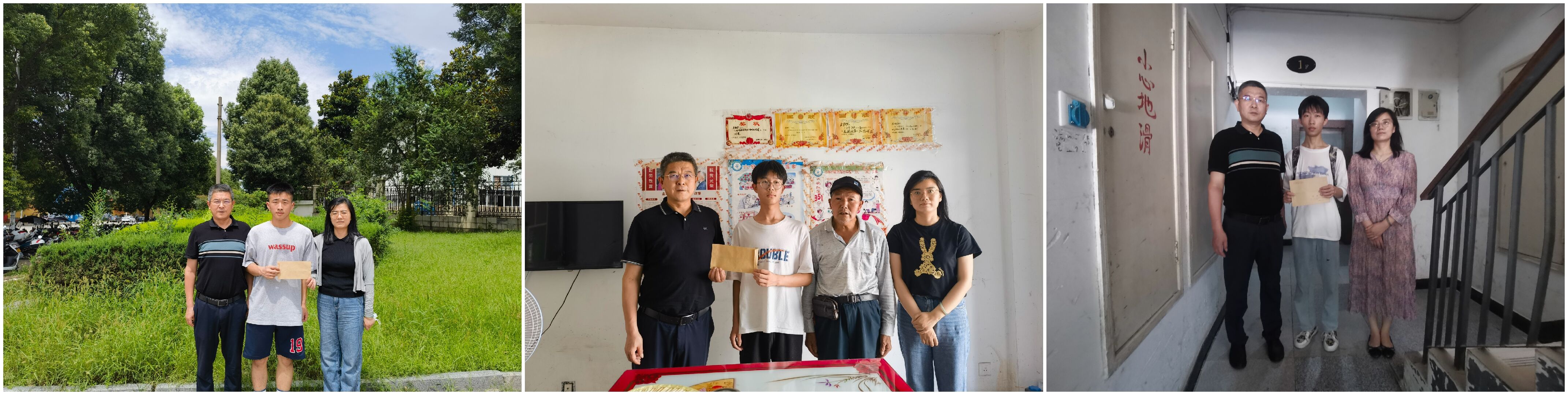 为广泛宣传国家资助政策,送资助政策进村、入户,2023年7月上旬,城市建设与交通学院党委书记张永军、副书记高乔楠一行赴六安等地走访慰问了我院三名学子,为困难学生家庭送去诚挚问候和温暖关怀。