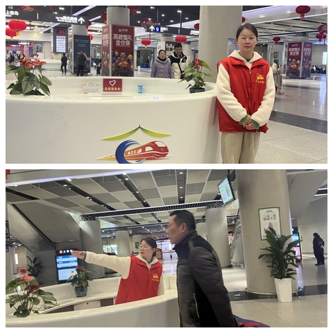 22级绿色建筑材料研究生李天莉假期参加了火车头志愿服务队组织的火车站志愿服务活动。适逢春节返工及学生返学热潮,她为有需要的旅客查询路线、引领他们找到准确的公交及地铁乘车口、帮助其在换乘空隙时间找到合适的休息区。