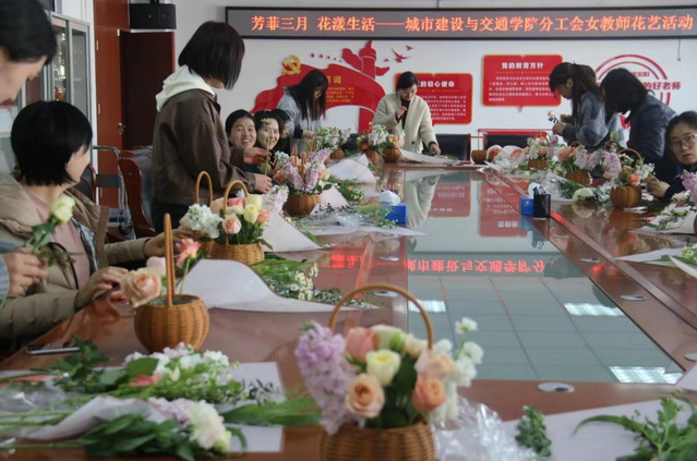 三月春风,百花盛开。为庆祝国际三八妇女节,丰富业余生活,城市建设与交通与交通学院于41305会议室举办“芳菲三月,花漾生活”花艺活动,学院全体女教师参加。