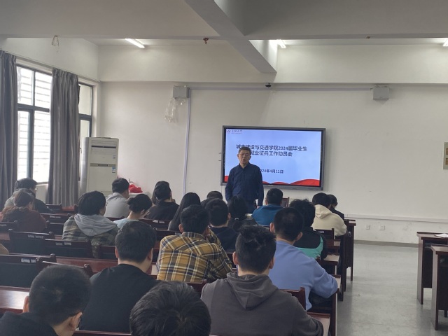 2024411日中午在41505教室,城市建设与交通学院召开了2024届毕业生就业征兵工作动员会,城建学院党委书记张永军、党委副书记高乔楠、校党委武装部国防动员科科长郑国平、毕业班辅导员以及2024届未就业毕业生参加了会议。