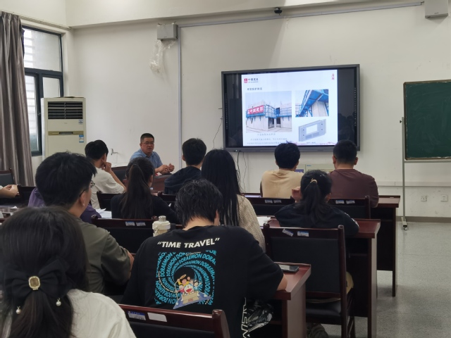 在讲座中,王安民高工结合自身丰富的实践经验,向同学们深入浅出地讲解了装配式建筑的生产和施工技术。他通过具体工程案例,详细阐述了装配式建筑在实际工程中的应用,以及施工现场可能遇到的难点和解决方案。他还特别以在建的合肥经开区山姆会员店项目为例,讲解了建筑工程的施工流程和现场施工策划,使同学们对建筑施工全过程有了更加直观的认识。王安民高工也鼓励同学们“珍惜学习时光,努力成为优秀的人”,他的话语深深激励了每一位同学。