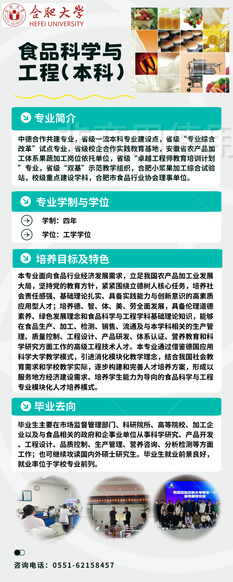食品科学与工程(本科) 咨询电话:0551-62158457