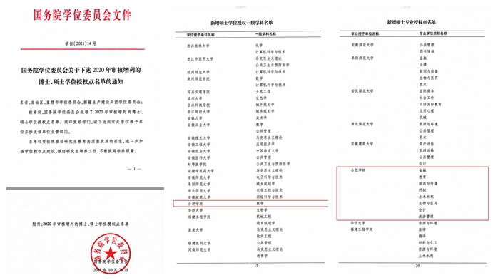 本次学位点申报,我校严格按照国家文件要求,以服务区域经济发展、提高人才培养质量、鼓励交叉学科为核心,结合学校学科发展规划,精心做好申报材料的组织和论证工作,硕士点增量居全国高校并列第6位,安徽省第1位。