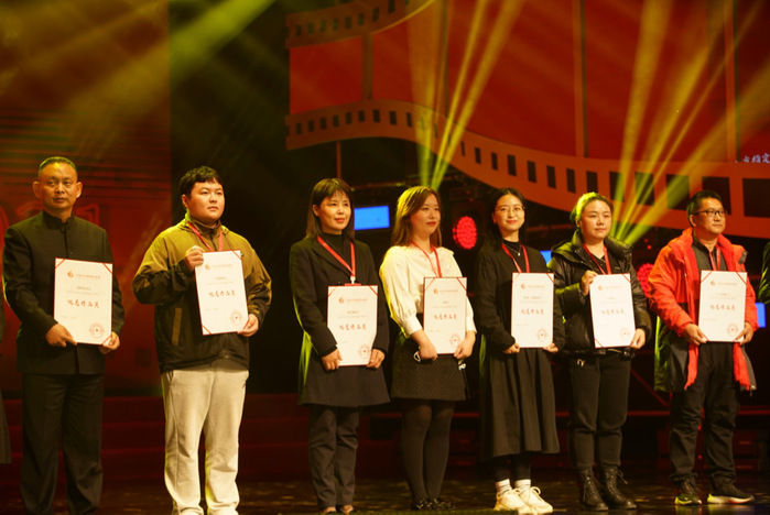 11月7日至8日,由中国电影家协会、安徽省委网信办、安徽省广播电视局、安徽省电影局、六安市人民政府和安徽广电传媒产业集团主办,六安市文化和旅游局、金安区人民政府、安徽电影集团承办,金安区文化和旅游局协办的“第四届中国红色微电影盛典推优典礼”在安徽省六安市举行。我校语言文化与传媒学院18级新闻学2班张向峰、方本翔、陆元婷、伦心悦、周书颖五位同学联合创作的、由郭丽老师指导的作品《马郢柴烧》获得“主竞赛单元优秀作品奖”,张向峰、陆元婷两位同学代表团队受邀参加推优典礼。