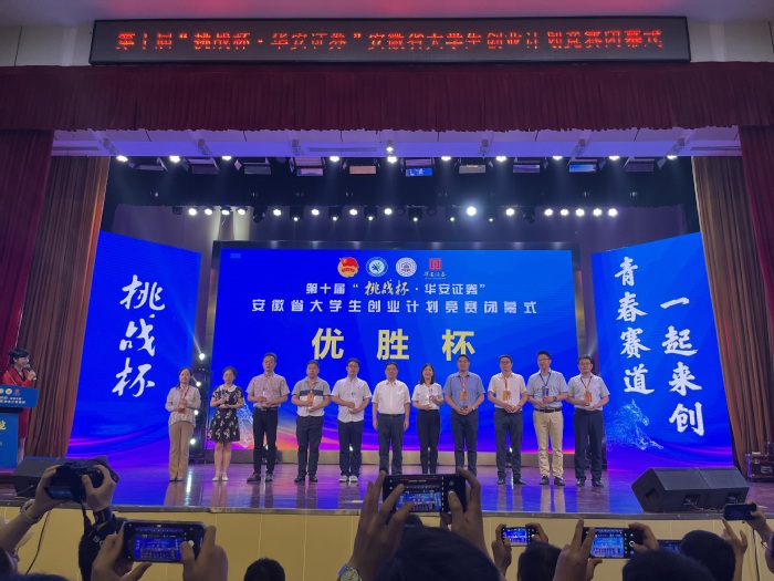 6月16日,由共青团安徽省委员会、安徽省教育厅、安徽省人力资源和社会保障厅、安徽省科学技术协会、安徽省学生联合会主办的第十届“挑战杯·华安证券”安徽省大学生创业计划竞赛在安徽工业大学落下帷幕。今年大赛参赛项目数再创新高,我校学生创业项目与来自省内123所高校的1237个项目同台竞技,经过激烈的角逐,最终斩获金奖2项,银奖6项,铜奖10项,我校获得优胜杯。